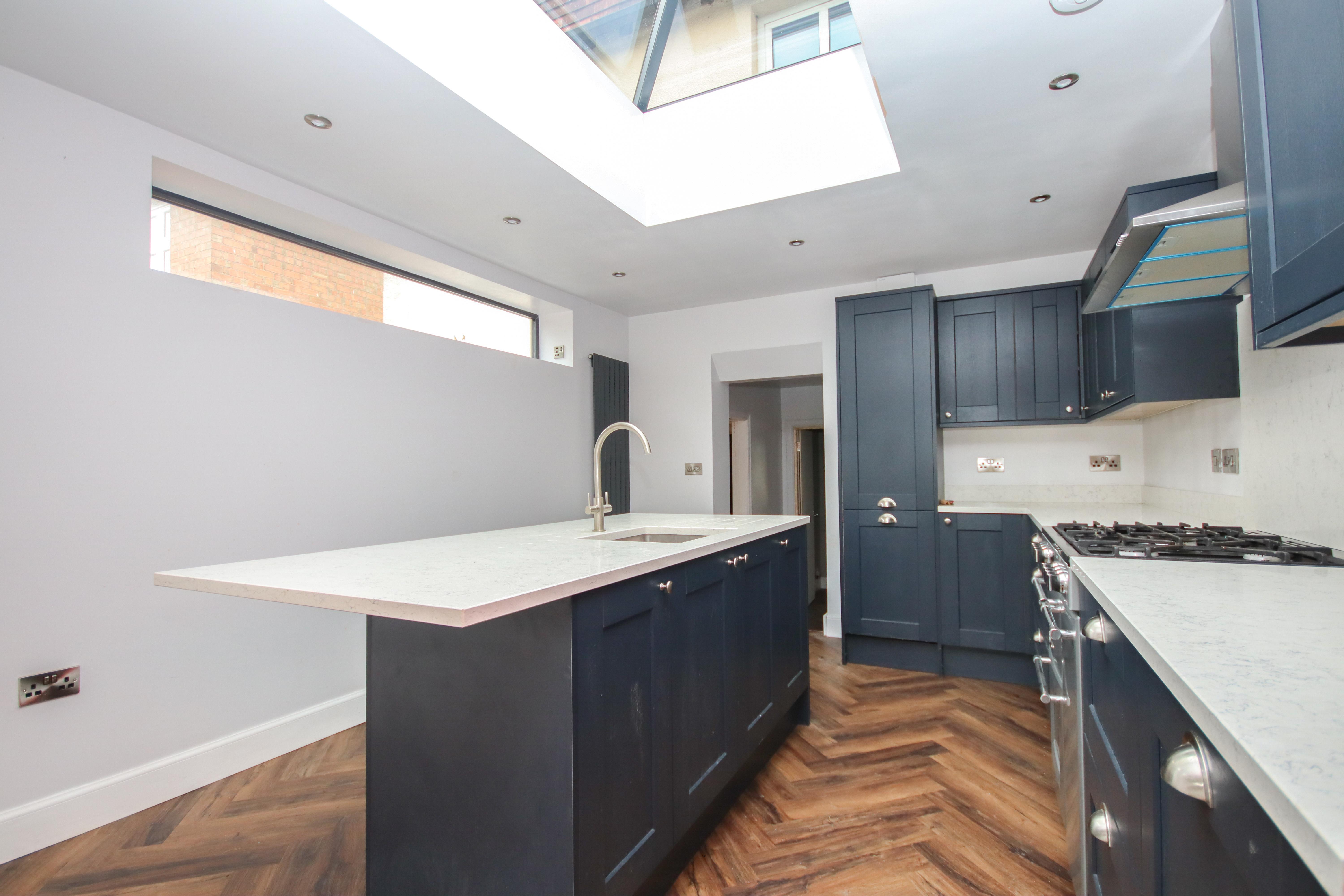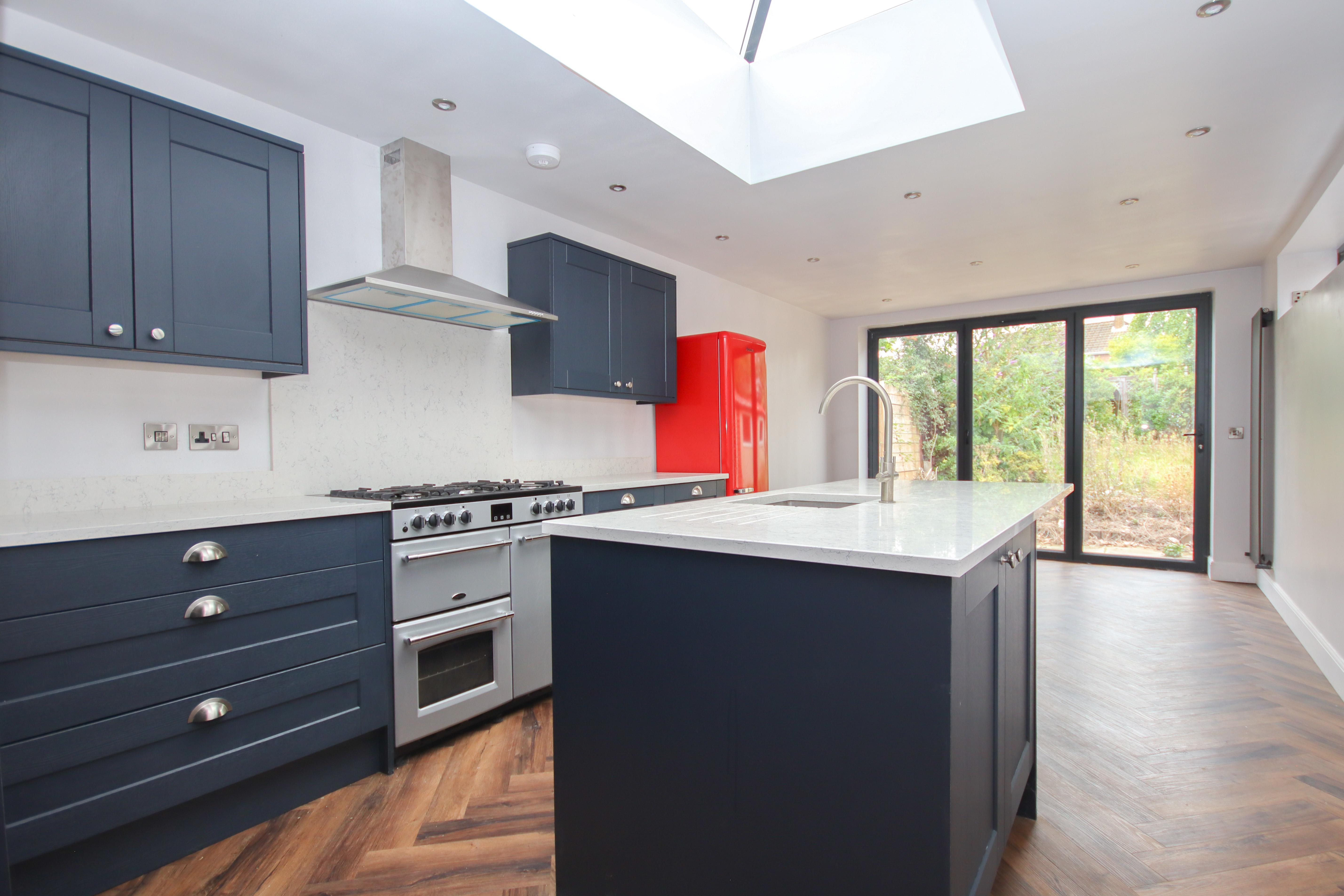 As you approach the property from the front, you will find a private driveway providing off-road parking for at least four cars. As you enter the property, you are greeted by a spacious entrance hall with a staircase rising to the first floor, and a door to your right where you will find a bay-fronted, open-plan living room and sitting room. Proceeding to the inner hall, you will find utility space and a downstairs cloakroom/WC, and at the rear of the property is an extended 22ft kitchen/dining room. The kitchen has an abundance of natural light as a result of folding glass doors to the rear garden and a skylight, and it has been fitted to a very high standard with quartz worktops and a range style oven.