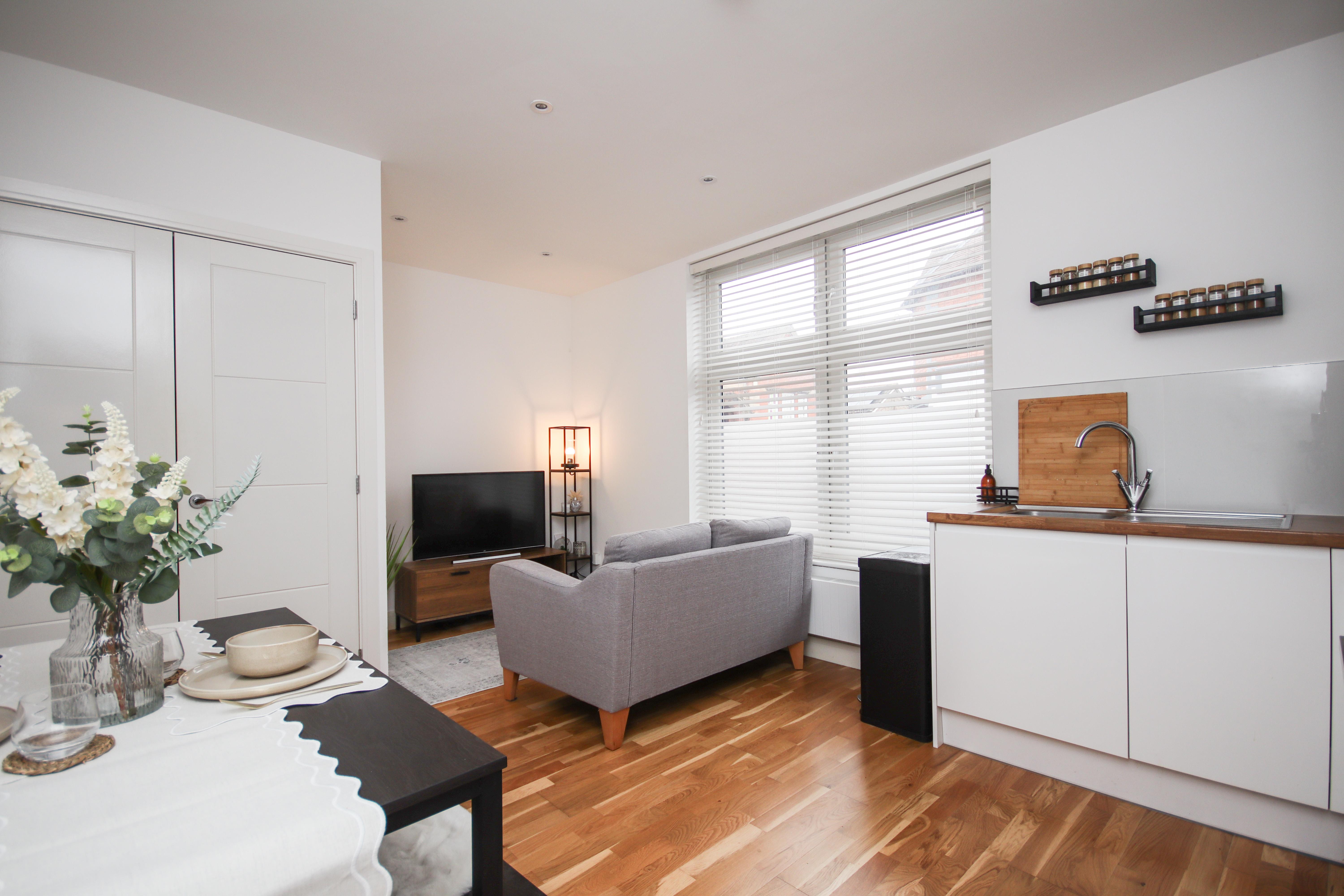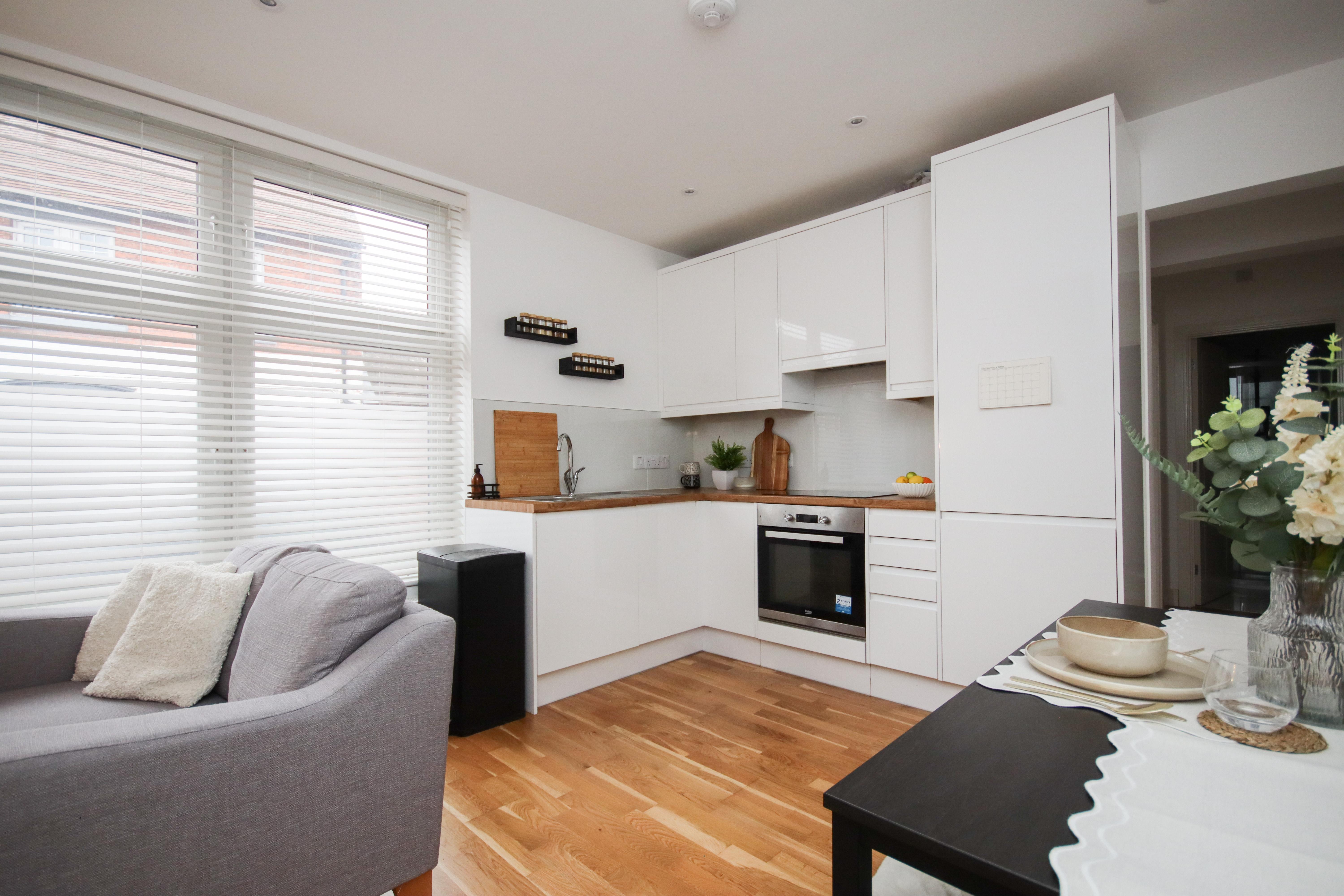 The home is beautifully presented throughout and boasts ample accommodation comprising a lovely open-plan kitchen/living room with a pantry cupboard, two double bedrooms, and a fully-tiled shower room. To the rear of the property is a shared courtyard garden.